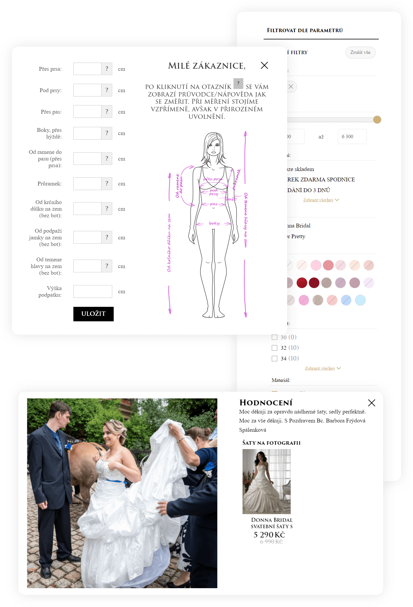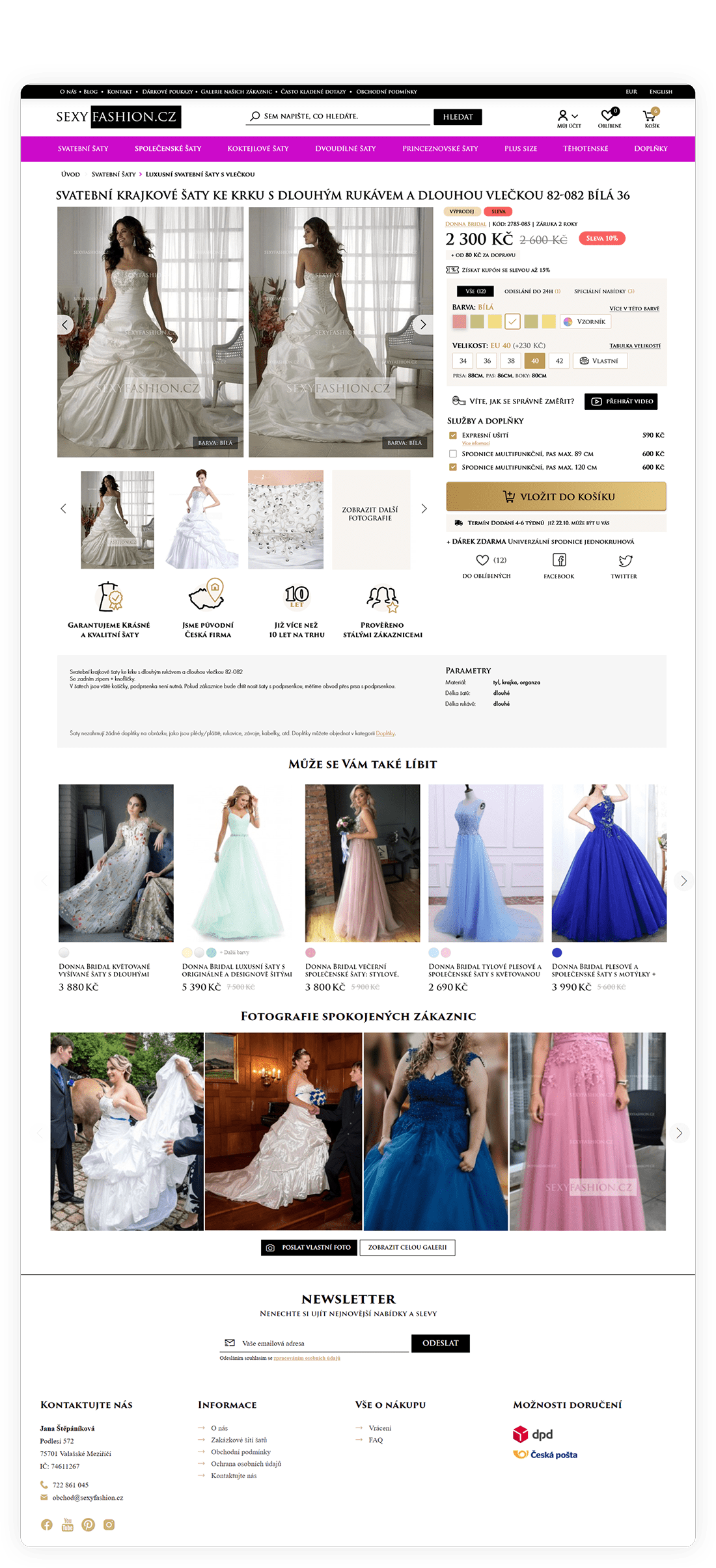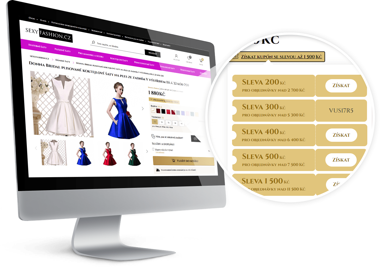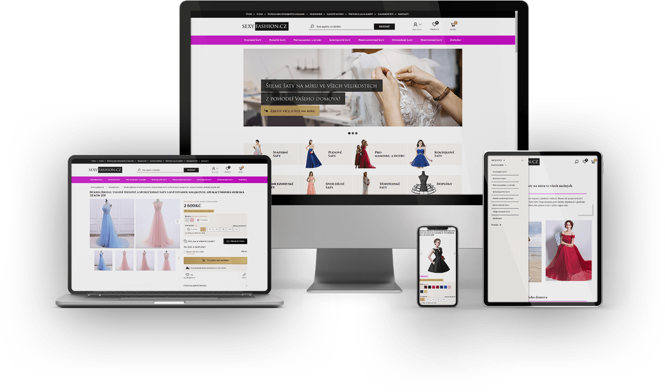 Responzivní grafická šablona na míru s funkcemi zaměřenými na prodej šatů, doplňků a zakázkové šití na systému jzshop.cz.